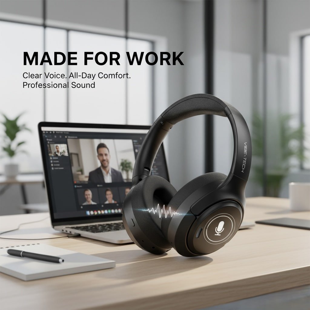Yes! Over-ear design with soft cushions and lightweight 115g construction ensures all-day comfort without fatigue.