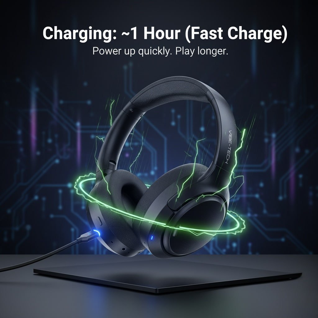 Use the included USB-C cable for fast 1-hour charging. Also works with standard 3.5mm audio cable when battery runs out.